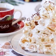 Dip the baked and cooled 'fingers' into the cream and pile them up.