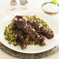 Preheat the grill and lightly grease with vegetable oil. Grill the kebabs for 8-10 minutes, turning constantly. Serve warm with the orzo salad.