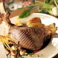 Lamb leg braised in red wine