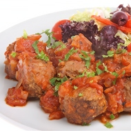 Bring the tomato sauce to a boil. Place the meatballs in the sauce, cover, and simmer on low heat for 1 hour, until the sauce thickens, stirring gently during cooking. Add lime juice. Before serving, sprinkle with chopped mint and serve with cooked rice.