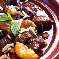 Melt 1 tablespoon of butter in the tagine. Add the meat and brown on all sides. Then add saffron, water, and the cinnamon stick, bringing to a boil. Reduce the heat and cook, covered, for about 1.5 hours until the meat is tender.