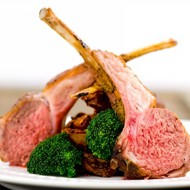 Preheat the oven to 428°F. Season the lamb with salt and pepper. Place the meat on a small baking tray and sprinkle the breadcrumbs on top, pressing them down slightly. Roast the meat for about 35 minutes, until the internal temperature reaches 135°F. Remove from the oven and let it rest for 15 minutes.