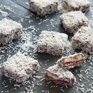 Coat each square in coconut one at a time, pressing gently to make it stick, and transfer to a serving plate. The lamingtons are ready! They can be stored in an airtight container in the refrigerator for 2–3 days.