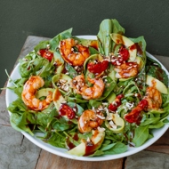 Large Green Salad with Shrimp, Avocado, and Shiitake