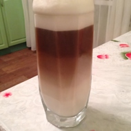 Slowly pour the coffee into the center of the glass with milk.