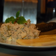 Dress the salad with a mixture of sour cream, vinegar, mustard, and grated horseradish.