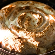 Place the roll in a baking dish, twist it into a 'snail' shape, and generously drizzle with the remaining sauce from step 2.