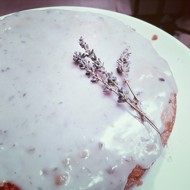 Mix the second half of the glaze with the lavender flowers, place it back on the heat, bring to a gentle boil, and simmer on low heat for 1-2 minutes. This will allow the syrup to thicken slightly. Just be careful not to burn the syrup. Add the remaining powdered sugar, mix until thickened, and then pour it completely over the cake. You can add a bit of purple food coloring to the second glaze.