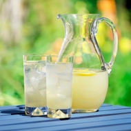 In a large pitcher, strain the lemonade through a sieve and add thinly sliced lemons and ice.