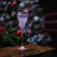 An interpretation of the gin and tonic with a touch of lavender. By the way, lavender is the color of the year, so in that sense, this cocktail is very trendy. Lavender is present both in the garnish and in the syrup we use. We buy the syrup, but if you want to make it at home, follow this recipe: 700 ml of water, a bouquet of lavender about 100 grams, and 1 kg of sugar. This recipe was shared with us by John Smith, head bartender at a local café.