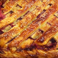 Top with dough cut into strips to create a lattice.