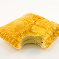 It's best to prepare puff pastry in a cool environment, especially during summer. The margarine should be softened or cut into pieces. So, mix the flour with a pinch of salt and sift it onto the table to form a mound. Add the margarine and chop everything together with a knife until it resembles crumbs — drizzle with lemon juice and a little water, and quickly knead the dough with your hands.