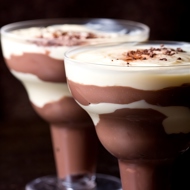 In small wine glasses or dessert cups, layer the chocolate mixture and cream, and sprinkle cocoa on top.