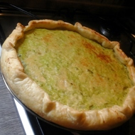 After that, take the pastry out of the oven, pour the asparagus puree into it, and bake at 338°F for about 20-30 minutes. At the end, sprinkle with the remaining cheese.