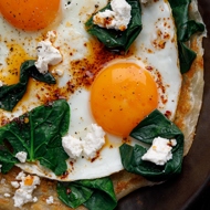 Put the fried eggs on top of the flatbread.