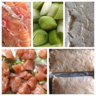 Spread half of each piece of dough with ricotta, layer the ingredients, and season with pepper and salt.