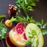 Place a glass under the juicer spout, juice a portion of the carrot, then add the beet juice on top of the carrot layer, followed by a portion of apple juice.