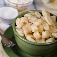 The dumplings should float to the surface. Use a slotted spoon to transfer them to a plate and drizzle with melted butter.