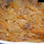 Mix all the prepared ingredients: rice, cabbage, and ground meat with the sauté. Place in a baking dish.