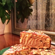 Let it cool and decorate to your liking! In my case, I used raspberry jam and walnuts. It would also be delicious covered with chocolate glaze or milk cream.