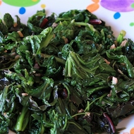 Add the chopped greens and broth, and cook, stirring, for a few minutes until soft. Add salt and TABASCO to taste and serve.