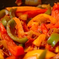 Remove the stems and seeds from the peppers, wash them, dry them, and cut them into small strips.