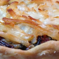 Roll out the pastry into a circle with a diameter of 35 cm. Place it in a round tart pan with low sides and press it down well. Refrigerate for 30 minutes.