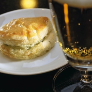 Juicy, savory pastries — perfect with beer, but great on their own as well. You can make the pesto yourself: for 1 bunch of fresh basil, take a handful of pine nuts, 1 clove of garlic, 50 g of olive oil, and 50 g of grated cheese — usually half Parmesan and half Pecorino or Grana Padano. Tear the basil leaves from the stems and place them in a blender along with all the other ingredients.