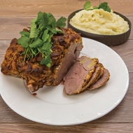 Leg of Lamb Baked in Mustard and Herb Crust with Mashed Potatoes
