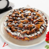 Cover the pie with pastry gel, and if you don't have any on hand, dust it with powdered sugar using a fine sieve. Enjoy the pie immediately while it's still slightly warm; that's when it's at its most delicious.