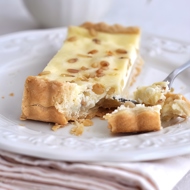 Spread the cheese mixture over the cooled dough, sprinkle with roasted pine nuts, and gently press them into the cream with a spoon. Smooth the top.