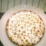 Assemble: fill the tart with cream and top with meringue. You can place it under the broiler for 30-60 seconds to brown the meringue or use a torch, or you can leave it as is.