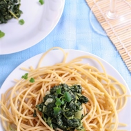 Drain the cooked pasta and immediately return it to the pot. Add the sauce and mix. Serve on warm plates, sprinkled with 1 tablespoon of grated lemon zest.
