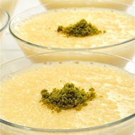 Pour the mixture into a greased 1-liter ovenproof dish and place it in a pan with warm water.