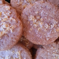 For the topping, mix the grated zest of half a lemon with the remaining sugar. Place this mixture on each cookie.
