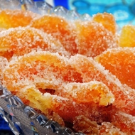 Leave in the syrup for a day and then simmer for another 5 minutes. Remove the wedges from the hot syrup and place them on parchment paper to cool. You can leave them out for a couple of days on the kitchen counter, or you can dry them in the oven at the lowest temperature with the door slightly open. The dried wedges should be rolled in granulated sugar.