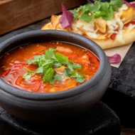 A lenten soup featuring a wealth of spicy and vibrant ingredients, including a flavorful sauce. It is recommended to simmer the broth for 2-3 hours. This recipe was shared by a chef from a popular American restaurant.