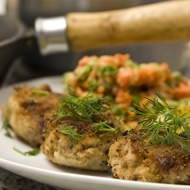 Divide the mixture into 24 portions and shape into patties. Brush with beaten eggs and coat with breadcrumbs. Fry the patties in hot peanut oil until golden brown. Drain the oil and serve.