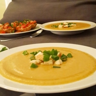 Cut the bread into small cubes and toast them without oil in a skillet over low heat for 10 minutes, stirring constantly.