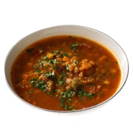Lightly blend the soup with an immersion blender, so that only part of the lentils turns into puree. To do this, make a few pulses with the immersion blender or transfer a third of the soup to a blender cup and blend it until smooth, then return the puree to the pot.