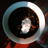 An optional element that elevates the bowl of soup to the peak of pleasure is a tablespoon of Greek yogurt or sour cream. I don't know what umami is, but I think this is it. Recipe by Martha Stewart with a video on the website marthastewart.com/863966/mushroom-and-lentil-soup