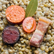Lentils with Bacon and Sausages