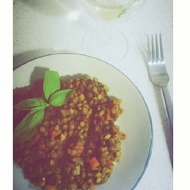 1. You don't have to use brown lentils. 2. I add some of the herbs during the simmering process. You can also add a couple of fresh basil leaves; it all depends on personal preference. 3. The dish shouldn't turn out dry, so don't hesitate to add water if the lentils are not yet cooked. Just add a little at a time to avoid overshooting.