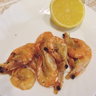 When the water turns brown, drain the water and place the shrimp on a plate along with the spices they were cooked with. Drizzle with lemon juice and let cool.