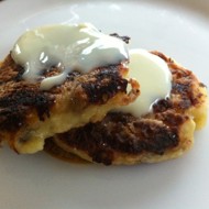 Coat in unbleached flour (the pancakes may be very delicate depending on the cottage cheese).