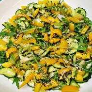 Transfer the cucumbers to a deep bowl. Add arugula and roughly chopped iceberg lettuce.