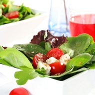 Light Italian salad with tomatoes, red onion, and goat cheese