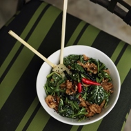 Cut the meat into 2 pieces and rub with 1 teaspoon of chili garlic sauce.