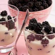 Divide the blackberries into 4 dessert cups and top with the yogurt mixture. Drizzle with orange honey and serve.