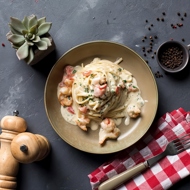 Add the pasta to the ingredients, mix, and serve on a plate.